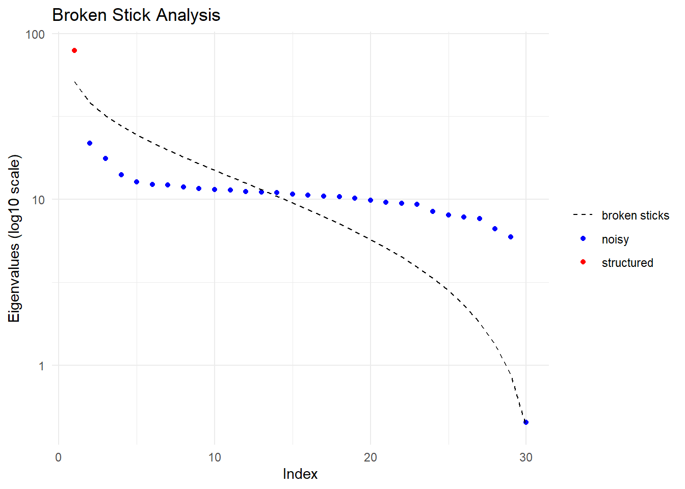 Number of dimensions with substantial eigenvalues (Broken-Stick Criterion): 1 . Hardwired limit 3