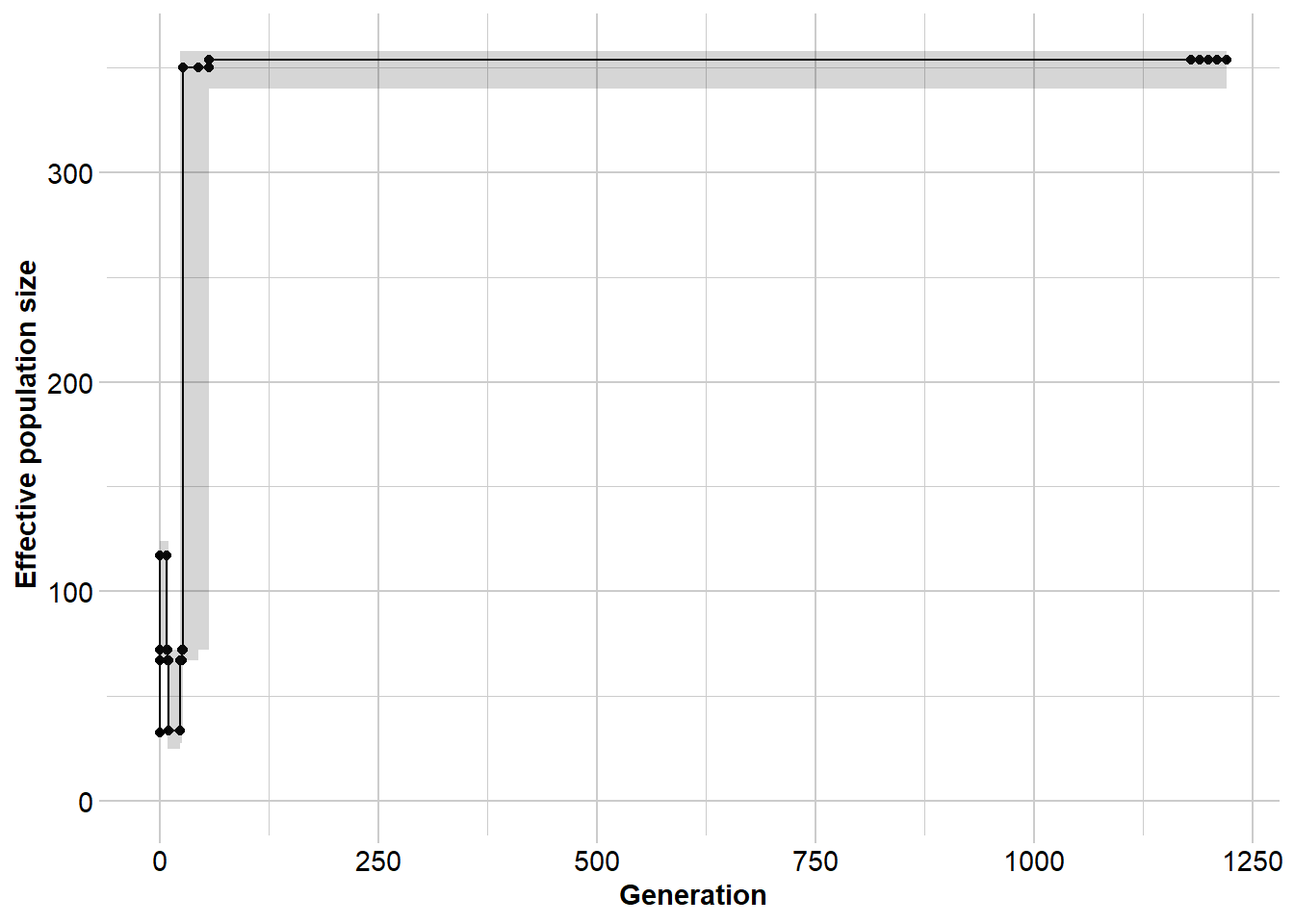 HMEstNe1 = round(NGens2/sum(1/EstNe[1:NGens2]),digits=1) ## harmonic mean estimated Ne, before change