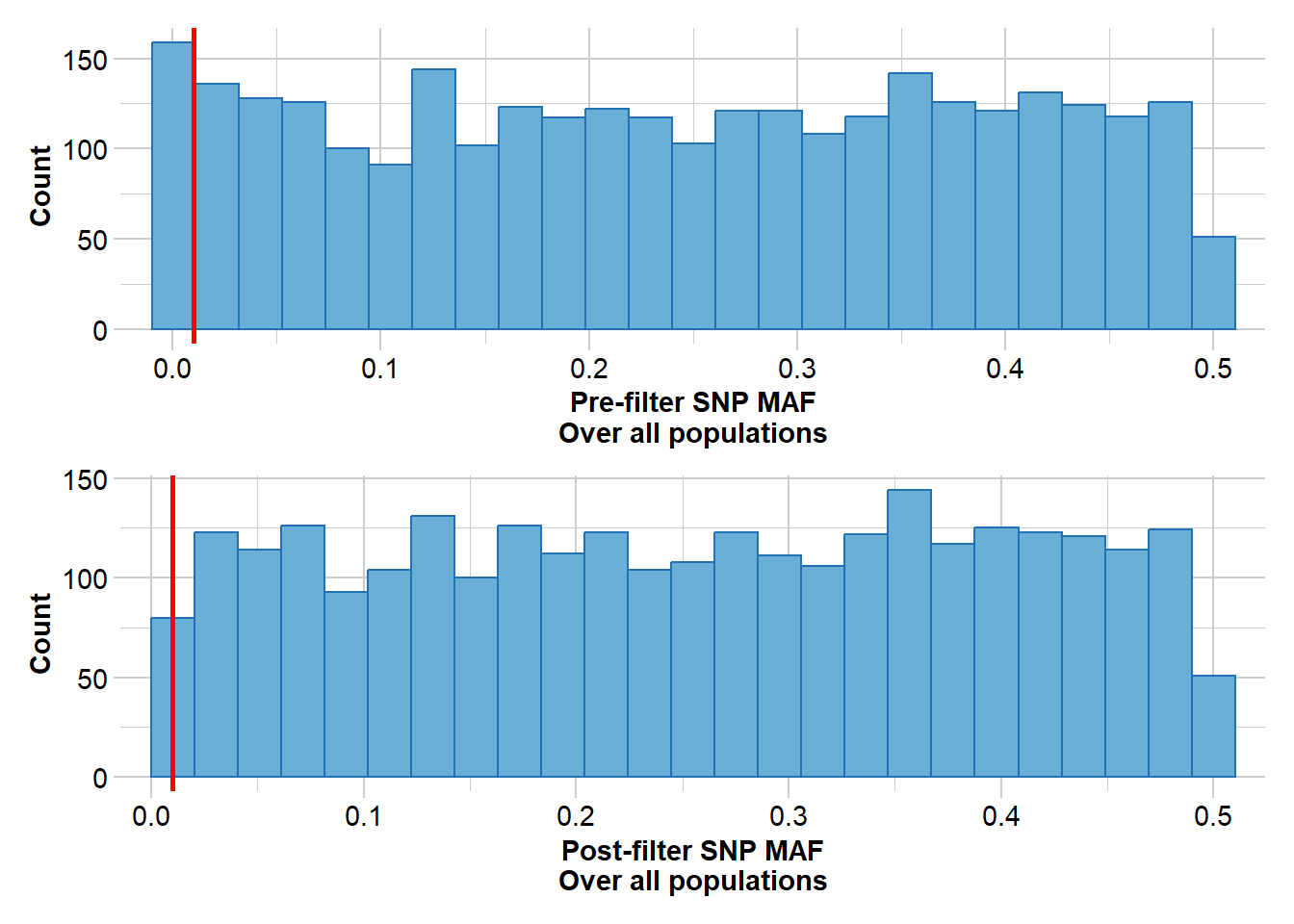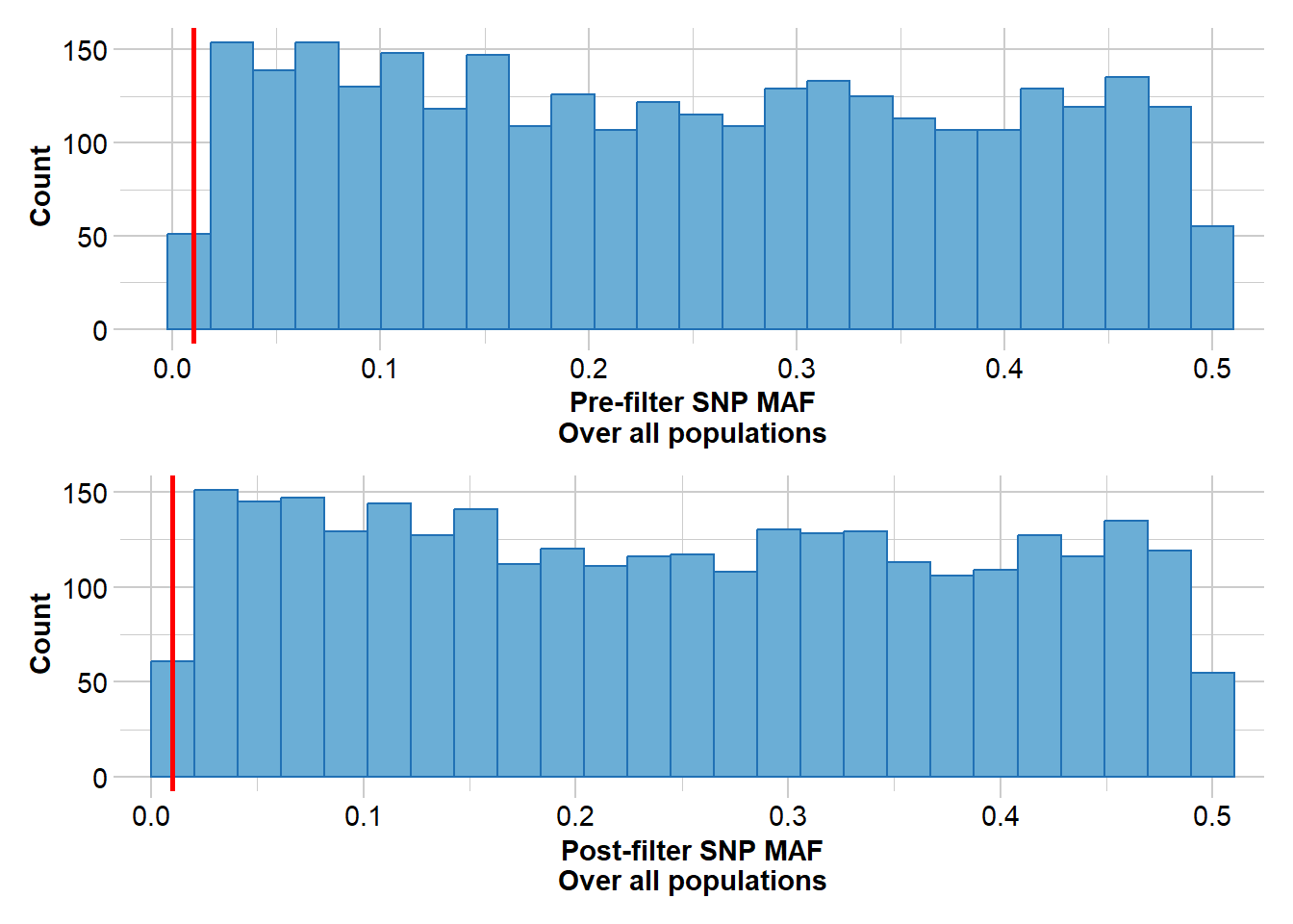 sheepFilter <- gl.filter.monomorphs(sheepFilter, verbose = 5)sheepFilter <- gl.filter.maf(sheepFilter)