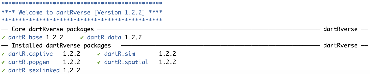 Once the dartRverse package has been installed we can load the package to check which part of the dartRverse has been installed.